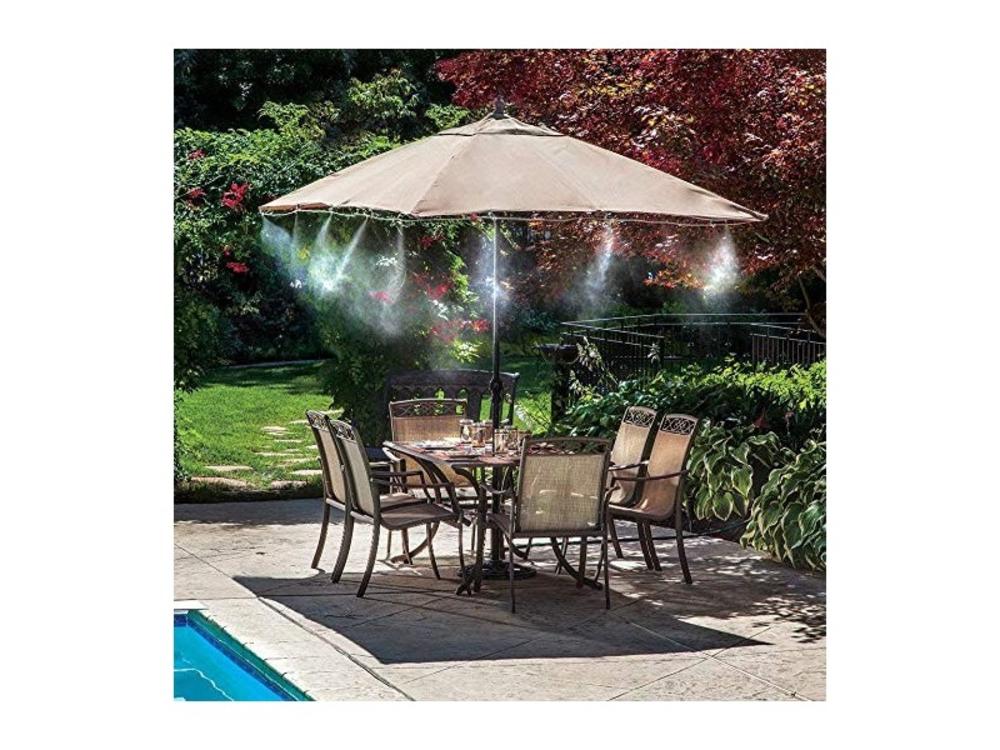 Ova fantastična vodena magla – raspršivač vodenom parom snižava temperaturu vazduha za čak 5 i više stepeni. Štiti od komaraca i može cela ekipa od 10oro ljudi da se smesti pod nju i uživa. U setu se dobijaju crevo dugačko 10 metara, jedan priključak za slavinu i 10 raspršivača.