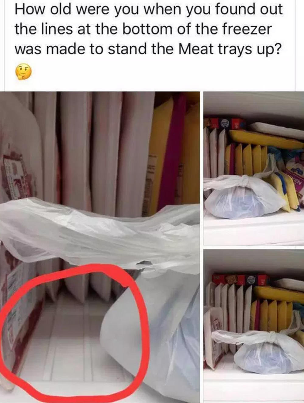- Kad ste vi saznali da linije na dnu fioka zamrzivača služe tome da kartoni sa mesom mogu da stoje uspravno? - glasilo je pitanje.