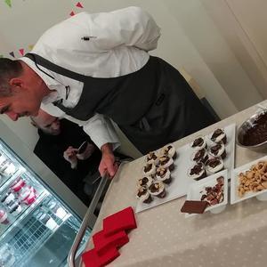 Kad se utroši polovina kora, odozgo rasporediti višnje, pa nastaviti premazivanje i slaganje kora.