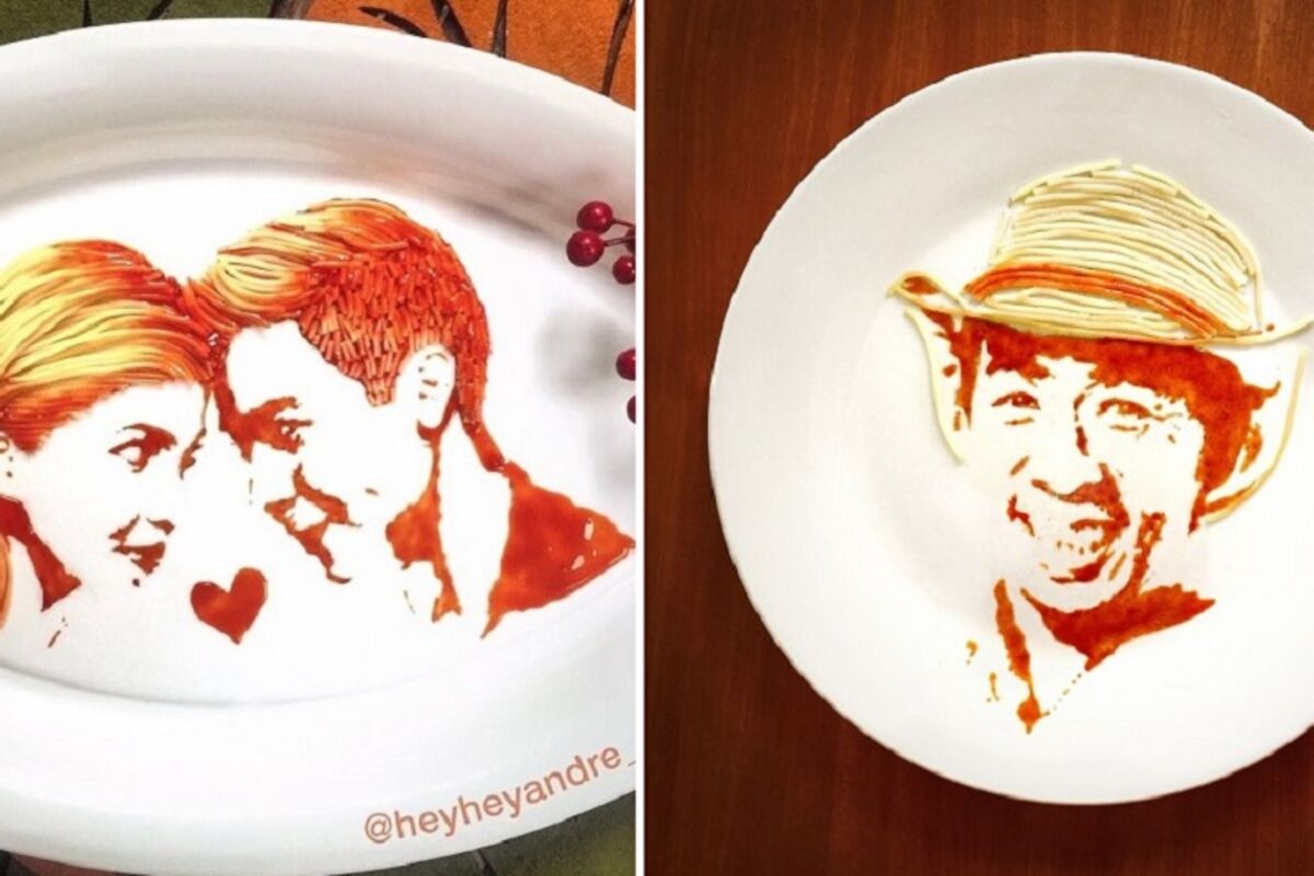 Andre Manguba je počeo da pravi portrete od paste kao deo školskog projekta, a onda je to preraslo u nešto više. Andre je koristio samo testeninu i sos od paradajza da napravi ove savršeno dobre portrete.