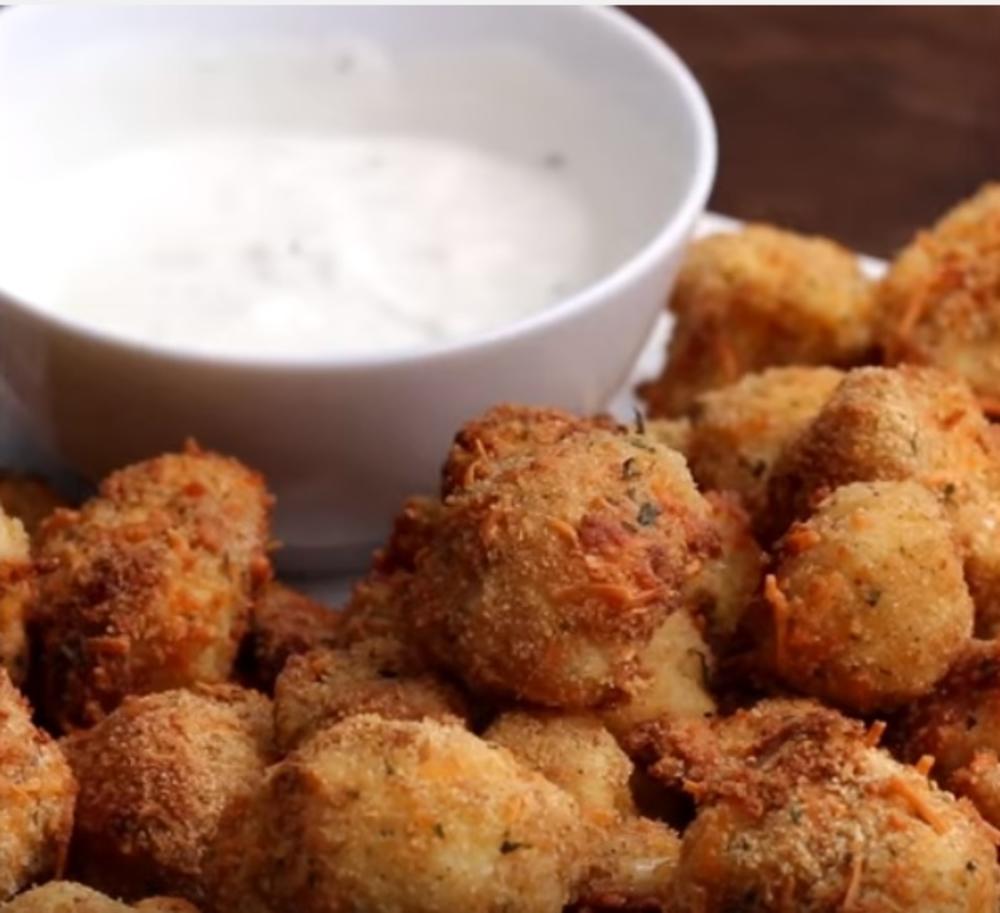 U jednu posudu stavite brašno, u drugu umućena jaja, u treću pomešajte mrvice, parmezan i čedar sir. Uvaljate cvetiće karfiola u brašno, pa u jaja i u smesu od sireva.