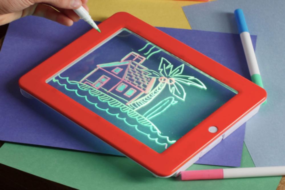Svetleća tabla je jedna od najprodavanijih edukativnih igračaka na svetu! To je tabla po kojoj klinci mogu da crtaju i da im crteži svetle i to u 8 light efekata! Svaki crtež postaje zanimljiviji, a deca imaju više želje da nauče još neke nove stvari da nacrtaju. Plus što se uz tablu dobija i čak 30 različitih šablona zahvaljujući kojima će deca moći da nacrtaju neke stvarčice koje samostalno ne bi mogli.