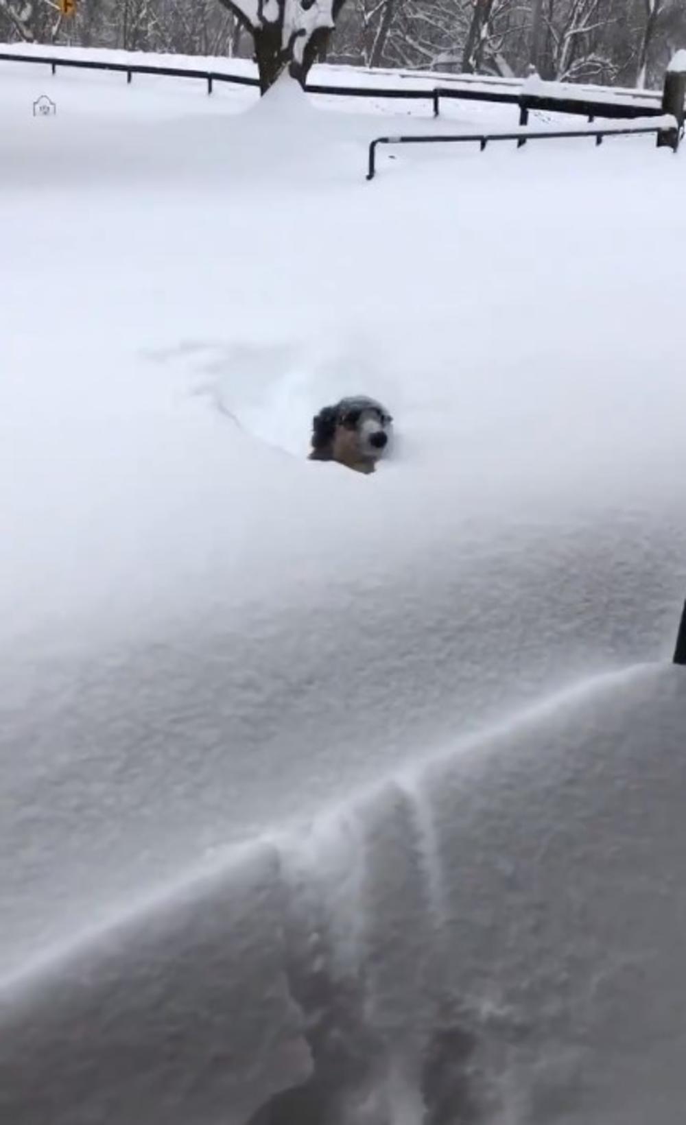 U sekundi je potpuno nestao ispod snega, da se čak i njegova vlasnica zabrinula.