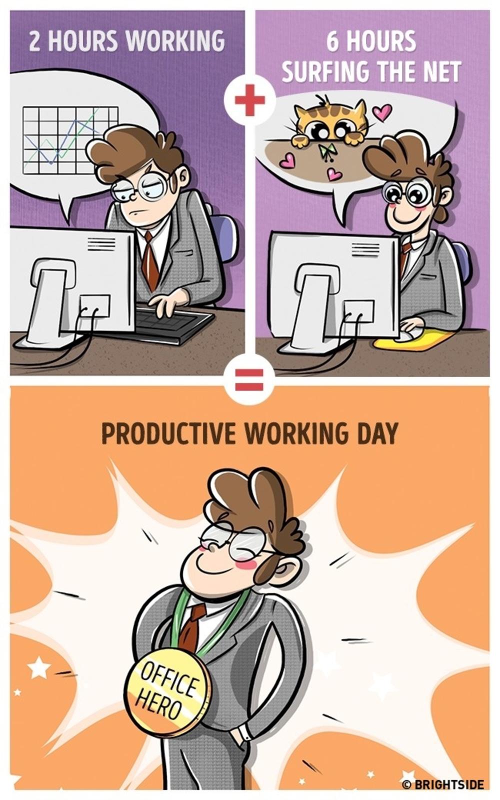 4. 2 sata posla + 6 sati blejanja na netu = produktivan radni dan
