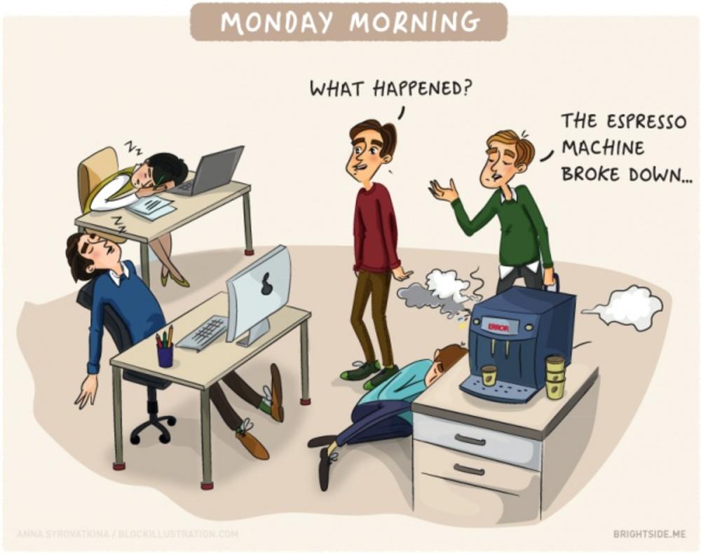 1. Ponedeljak ujutro ili kad se pokvari automat za kafu