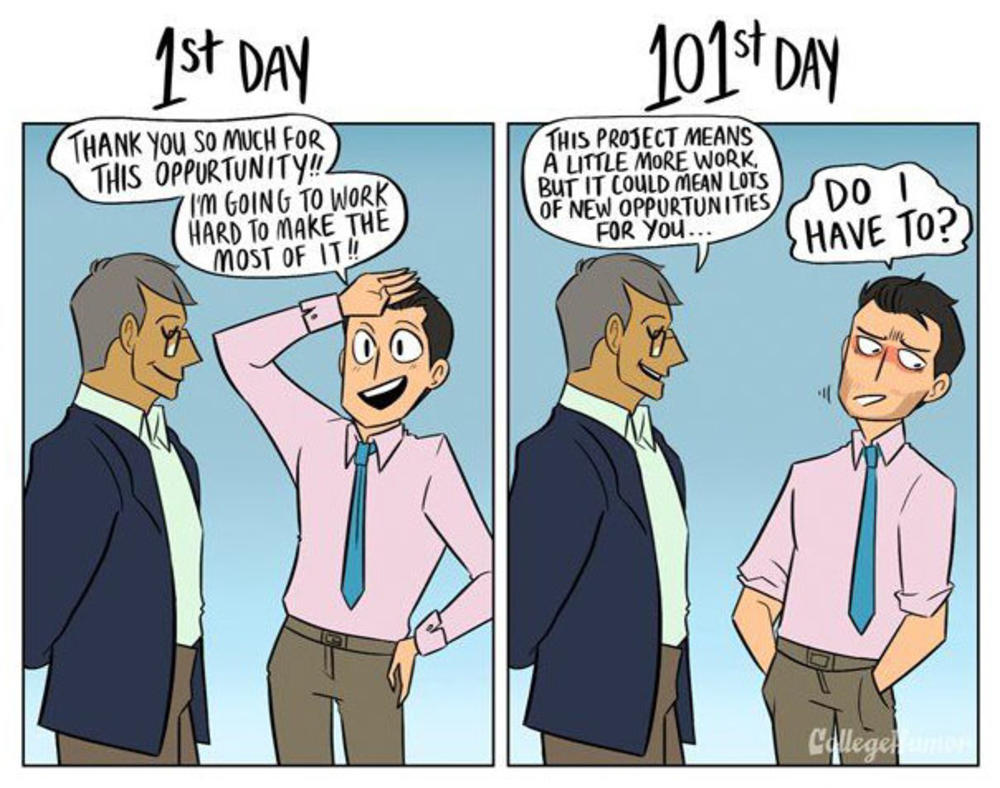 Da li ste već prošli kroz sve to? Niste?! E, pa onda se pripremite jer prva tri meseca posla izgledaju baš ovako