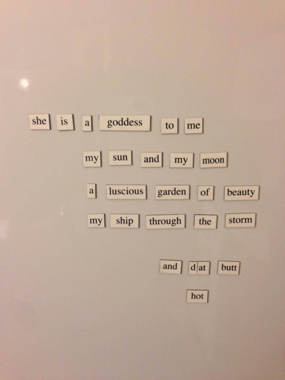 - Ona je moja boginja, moje sunce i mesec, pun vrt lepote, moj brod u oluji i ima tako dobru zadnjicu