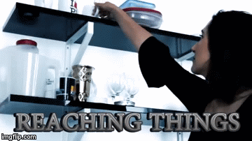 Uhhh, zar baš mora da bude na poslednjoj polici? Tako mi treba, a čak ni stolice blizu da se popnem. Čekaj malo, pa dovoljno sam visoka da to mogu i da dohvatim...
