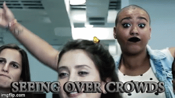 Zar baš svi moraju da se zbiju u prve redove, kako sad da vidim lepo? Za visoku devojku nikakav problem, jer ona može lepo da vidi preko ostalih, pa joj gužva nikada neće biti problem.