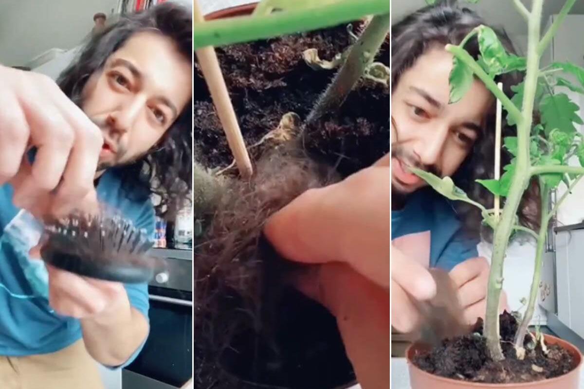 “Probudio sam se i očešljao kosu. Pogledao sam u četku i pitao se da li mogu da iskoristim ispale dlake za nešto. Iako se isprva činilo ludo, kasnije sam otkrio da kosa ima puno azota. Znao sam da je on ključan za rast biljaka koje bez njega požute i ne mogu da rastu”, objasnio je u videu koji je postao viralan na ovoj mreži.