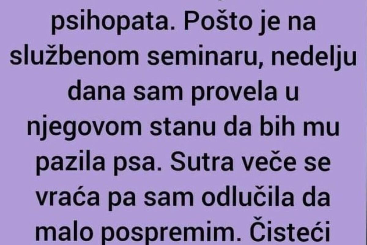 Pošto je na službenom seminaru, nedelju dana sam provela u njegovom stanu da bih mu pazila psa. Sutra veče se vraća pa sam odlučila da malo pospremim. Čisteći policu sa knjigama, pronašla sam sva njegova dokumenta i analize sa svakakvim testovima i izjavama psihologa i rezultatima.