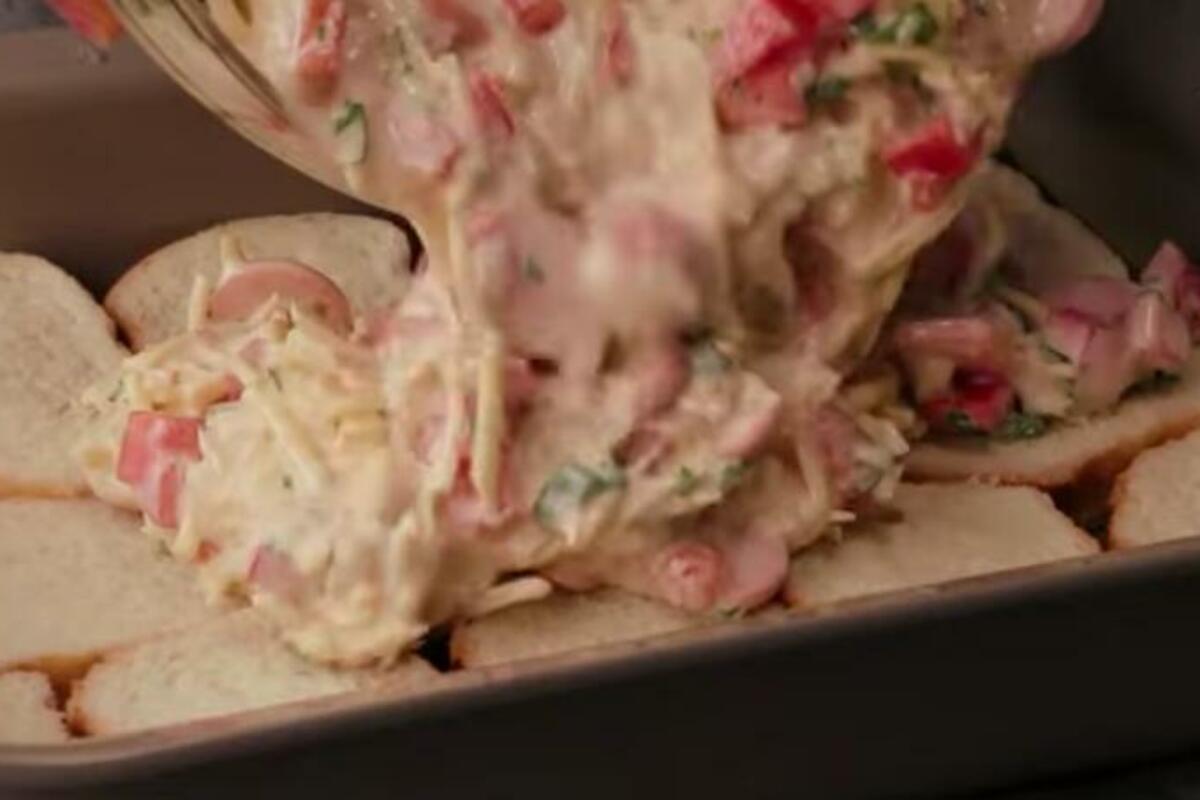 Hleb umočite u mleko i ređajte u pleh dimenzija 23x32 cm. Ostavite 10 minuta da upije, a vi pripremite fil. Jaja posolite, pobiberite, dodajte origano i umutite. Dodajte kiselu pavlaku, rendani sir, paradajz iseckan na kockice, viršle, crni luk i peršun, pa sve dobro sjedinite. Sipajte preko hleba i pecite u zagrejanoj rerni na 180°C nekih 30 minuta.