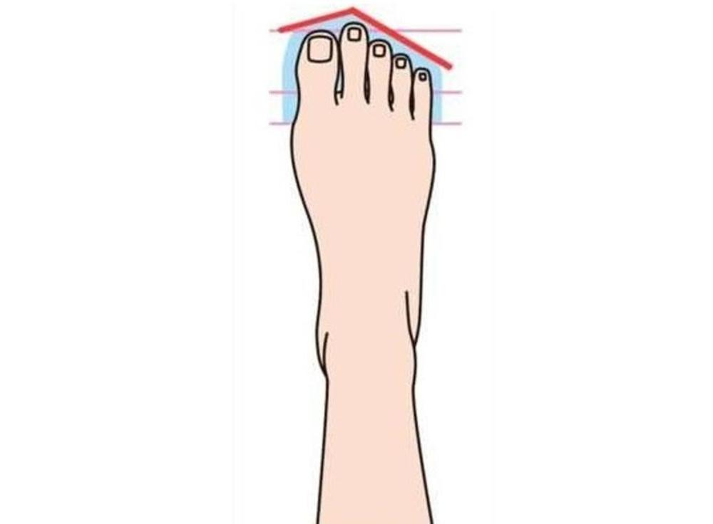 Ovakav izgled stopala ima većina ljudi. Palac i prva dva prsta su skoro iste veličine, a ostali su manji. On otkriva društvenu osobu koja voli ljude i da isprobava nove stvari. Težite uspehu u poslovnom svetu i uvek ste u centru pažnje.