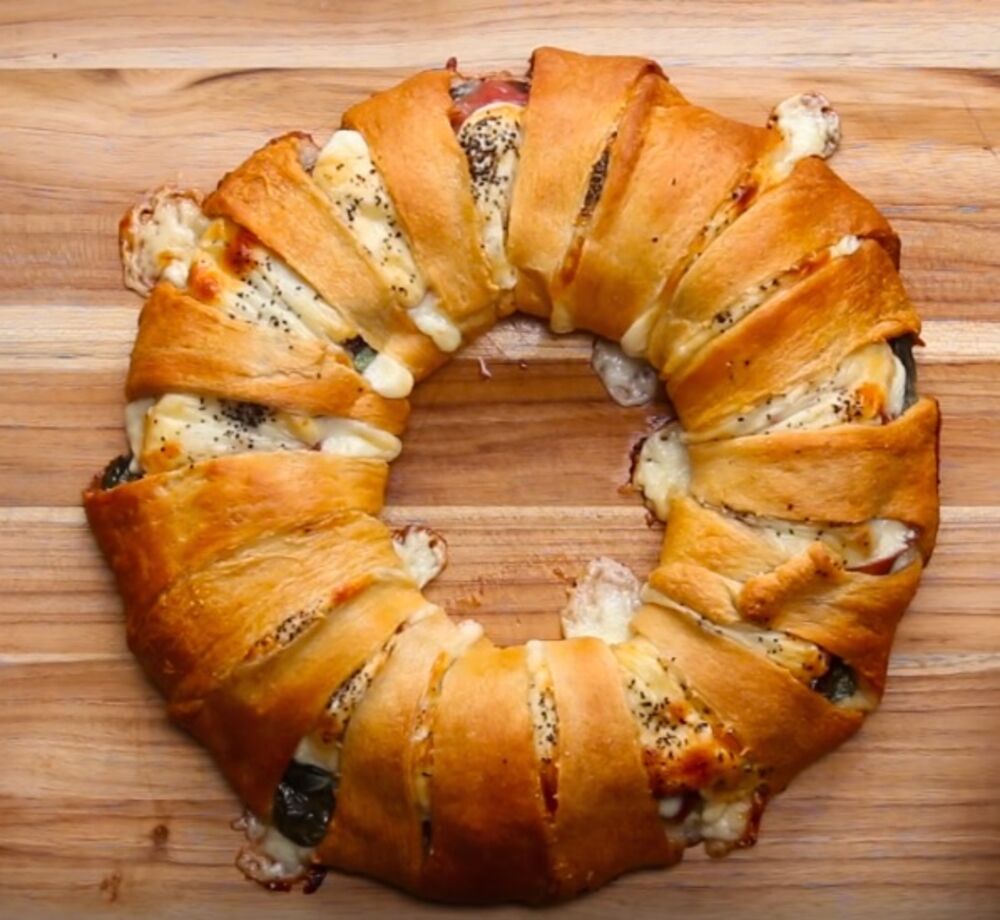Rastanjite testo, pa ga oblikujte u krug. Na sredini isecite krug veličine manje činije, a ka spolja testo isecite u obliku trouglića. Na testo stavljajte red sira, peprone, bosiljak, kobasicu, šunku, pršutu i provalone sir. Posolite i pobiberite.