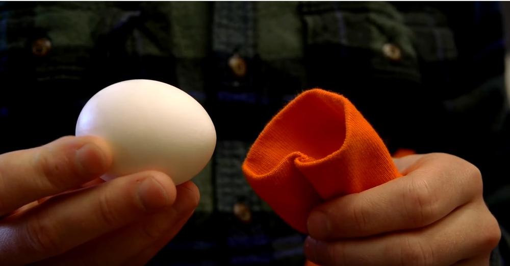 Zaigrajte se malo u svojoj kuhinji i iznenadite i sebe i druge, a sve što vam je potrebno za ovu majstoriju su selotejp i ženske čarape ili krpa. Jaje oblepite selotejpom, a zatim stavite u krpu ili čarapu i na oba kraja pričvrstite gumicama. Nakon toga zavrtite jaje držeći krajeve krpe ili čarape. Potom skuvajte jaje kao što ga inače kuvate.
