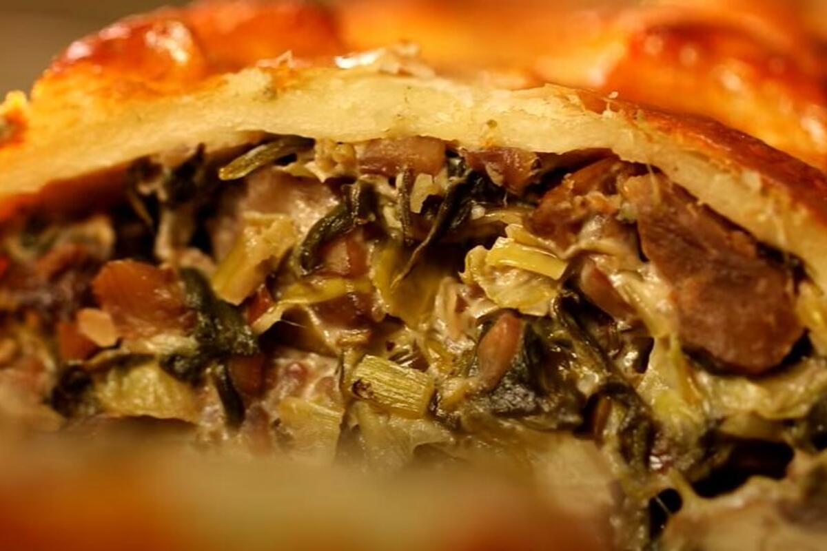 Izrežite malu rupu na vrhu složenca kroz koju će izlaziti para, a zatim premažite gornji deo mešavinom senfa i mleka. Ohladite 30 min. Može stajati u frižideru do dva dana.