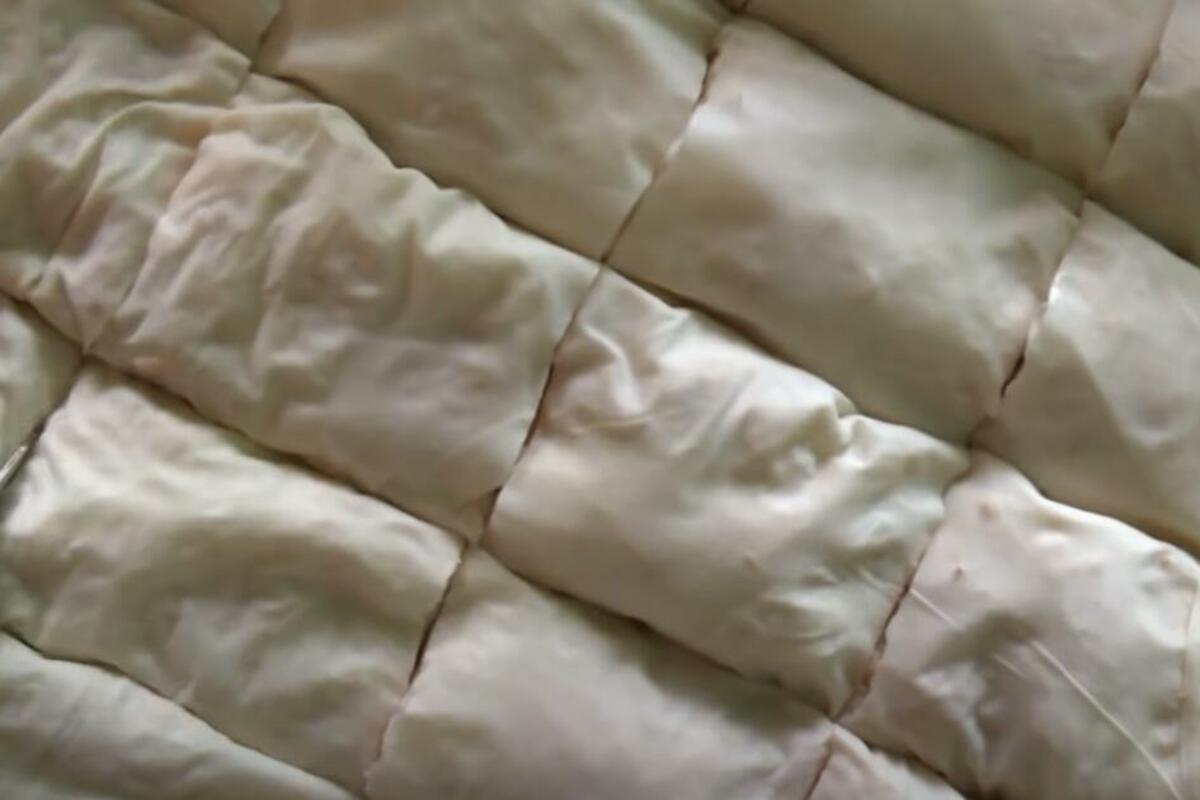 Jednu koru zatim poprskati sa kiselom vodom i uljem pa razbacati fil svuda po kori onda staviti i drugu koru preko ,poprskati je sa smesom od kisele vode i ulja i isto uraditi sa filom i tako uraditi i sa trećom korom.Uviti ih u rolat, pa ih stavite u pleh, obavezno koristite papir za pečenje.