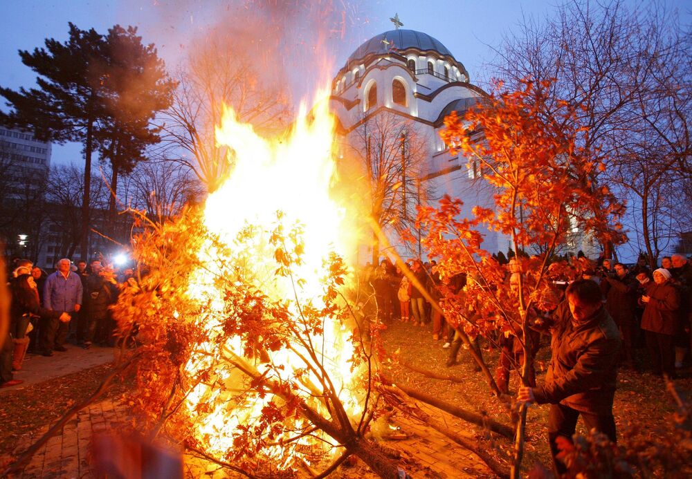 Običaji za Božič kod Srba podrazumevaju odlazak ispred crkve na Badnje veče i paljenje badnjaka. Tu , ispred crkve, počinje slavlje jer se okuplja veliki broj prijatelja, deca se druže, a roditelji proslavljaju Badnje veče uz po koju čašicu rakije. Kada dođe ponoć to se svečano obeležava ponoćnom liturgijom za Božić i paljenjem sveće.