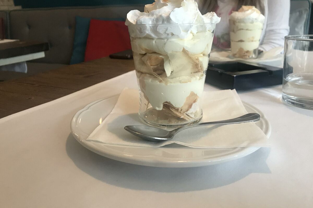Dok se skuvani krem hladi, umutiti prah za šlag sa 1,2 litra mleka. Pomešati hladan krem i umućeni šlag, još mutiti dok se mase ne sjedine, i sipati krem u kalup na pečenu koru. Odozgo nožem podeliti kolač na 24 parčeta (tri po širini i osam po dužini), i služiti sa isečenim “poklopcem” od one druge kore koja se ne stavlja u frižider. Pre služenja posuti šećerom u prahu.