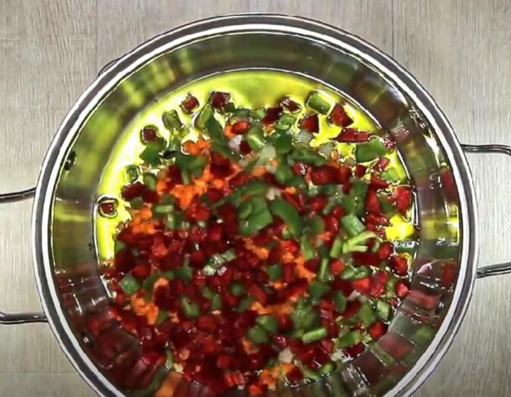 Sastojci: 1,5 šolja pirinča, 1 glavica crnog luka, 1 veća crvena ili zelena paprika, 10 crnih maslina, 1 šargarepa, 2 kašike paradajz pirea, 1 manja tikvica, 150 g pečuraka, so, 100 ml ulja, peršun, 1 kašika suve nane.