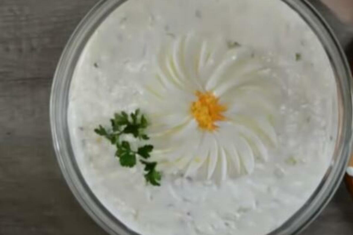Pomešajte majonez, kiselu pavlaku, senf i so, te prelijte preko i sve lagano izmešajte da se lepo prožme.