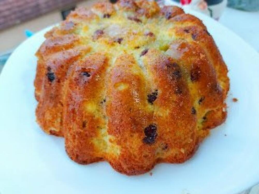 Umutiti jaja sa šećerom, dodati brašno sa praškom za pecivo, ulje, koricu limuna, žele bombone, suvo grožđe jogurt i sve izjednačiti. Sipati u manji pleh ili u manji kuglof. Peći na 200 stepeni C oko 30 minuta. Posutu prah šećerom zamisina vanilin šećerom