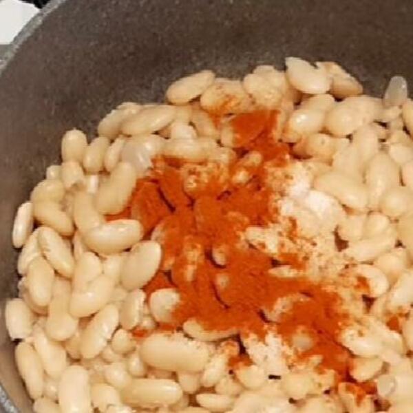 Skuvani pasulj ocediti i ispasirati, posoliti i pobiberiti po ukusu. Dodati sitno seckani beli luk i sve dobro izmešati. Pire od pasulja sipati u posudu za služenje, oblikovati po želji, pa posuti alevom paprikom. Preliti zagrejanim uljem, pa kašikom ujednačiti ulje i papriku.