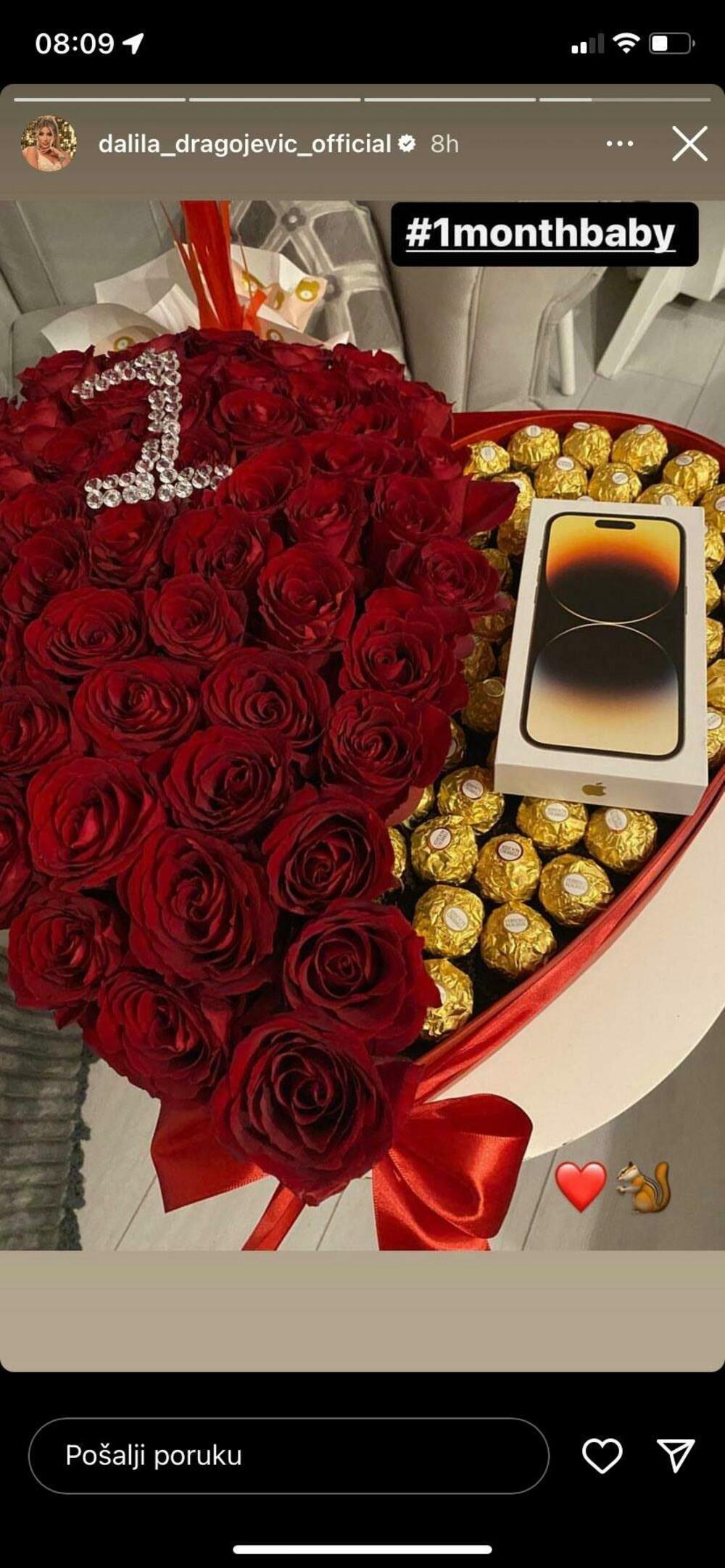 Dalilu je njen dragi obradovao skupocenim cvetnim aranžmanom sastavljenom od crvenih ruža i zadrugarkinih omiljenih slatkiša, a glavni poklon jeste najnoviji, skupoceni telefon, čija se cena kreće preko 1.500 evra.