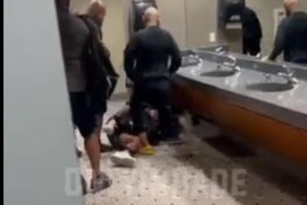 Na snimku koji se pojavio na Tviteru, vidi se grupa muškaraca kako stoje iznad njega i udaraju ga dok se savija na podu toaleta teretane.