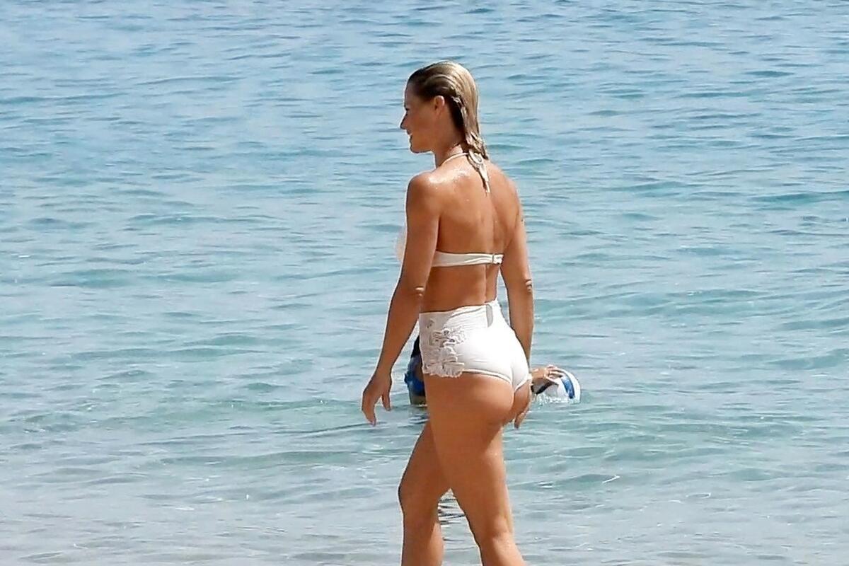 Baš interesntan odabir kupaćeg kostima! Mišel Hunciker nosila je na plaži retro model sa donjim delom podignutog struka, kostim ima raskošne detalje i na prvi pogled je poput glamuroznog veša.