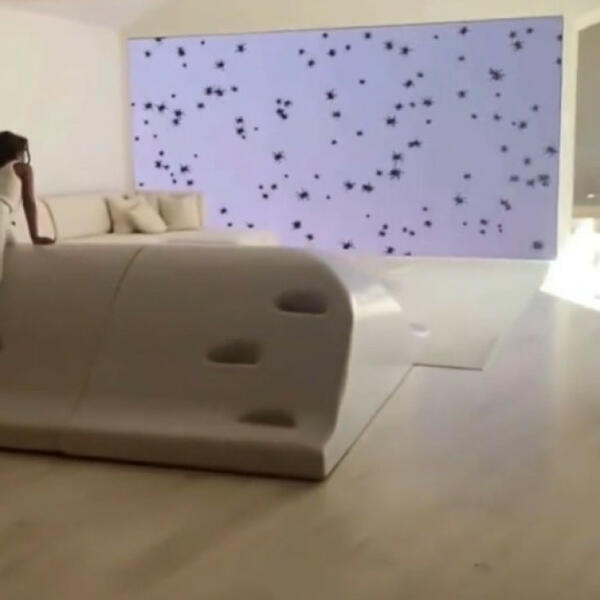 Ona je transformisala i svoju trpezariju i kuhinju, pa je na sve strane postavljena paučina, a na televizoru, koji zauzima čitav zid, smenjuju se strašni snimci i fotografije. Da bi deci još više ugodila, ispred televizora im je postavila i tobogan.