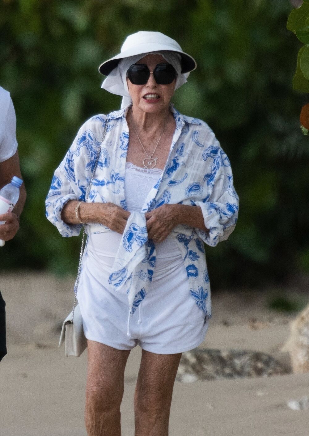 Paparaci su je snimili u belom kombinezonu i širokom donjem vešu, koje je hrabro pokazala pošto je skinula šarenu košulju. Oči je od sunca sakrila velikim tamnim naočarima i kapom sa širokim obodom.