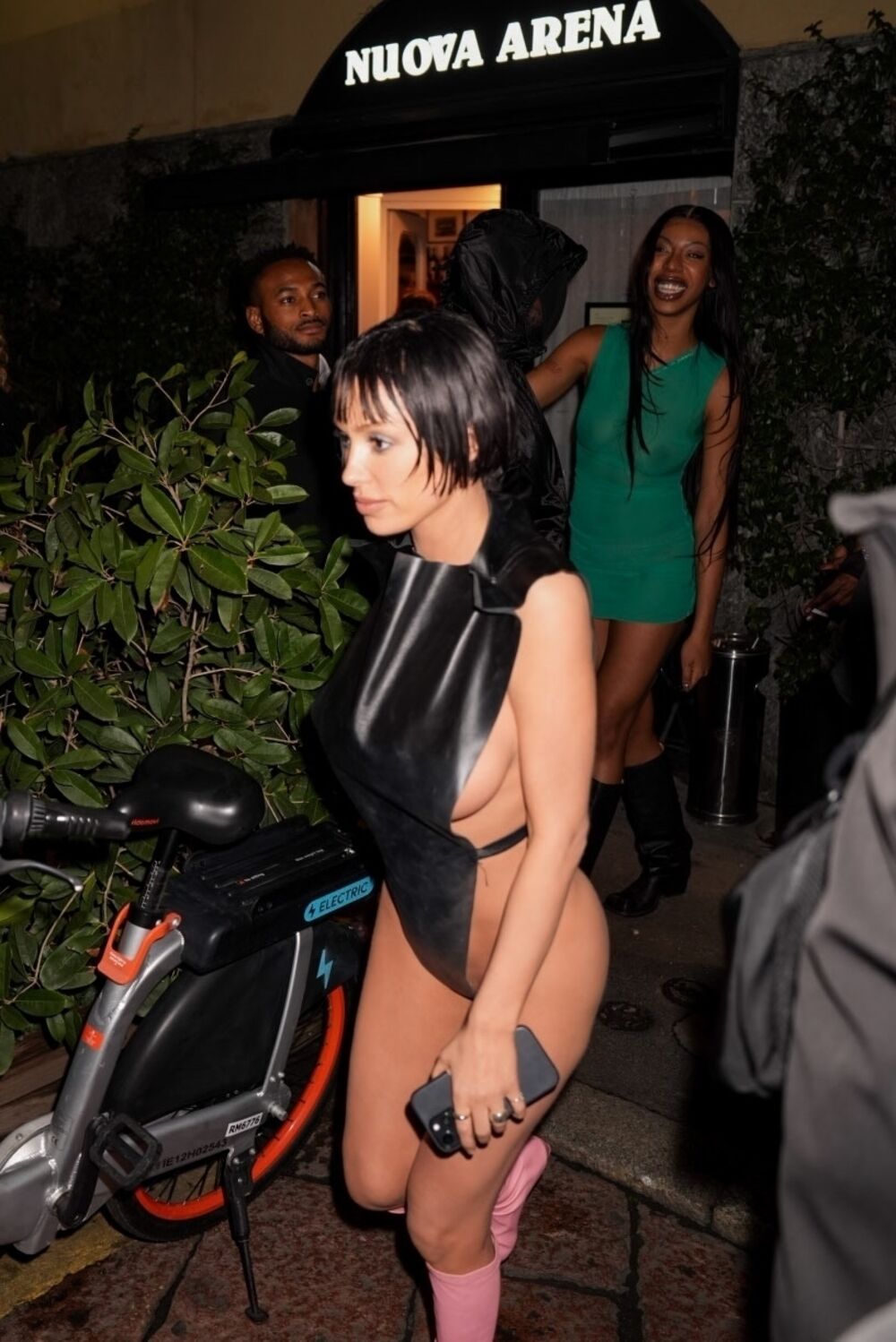Bjankin kožni bodi bio je u potpunosti otvoren sa strane i otkrivao je njeno bujno poprsje, a iza je pokazivao njenu raskošnu zadnjicu.