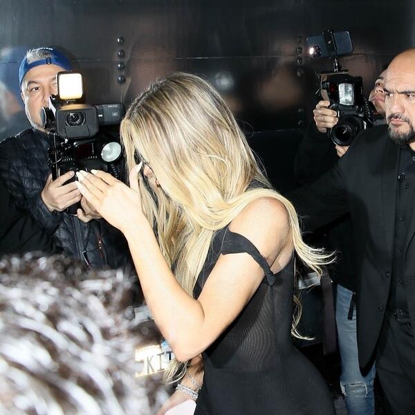39-godišnja rijaliti zvezda "Keeping Up With the Kardashians" je stigla u crnoj mini providnoj haljini. Kloi nije nosila brushalter pa su joj se nazirale bradavice kroz haljinu.
