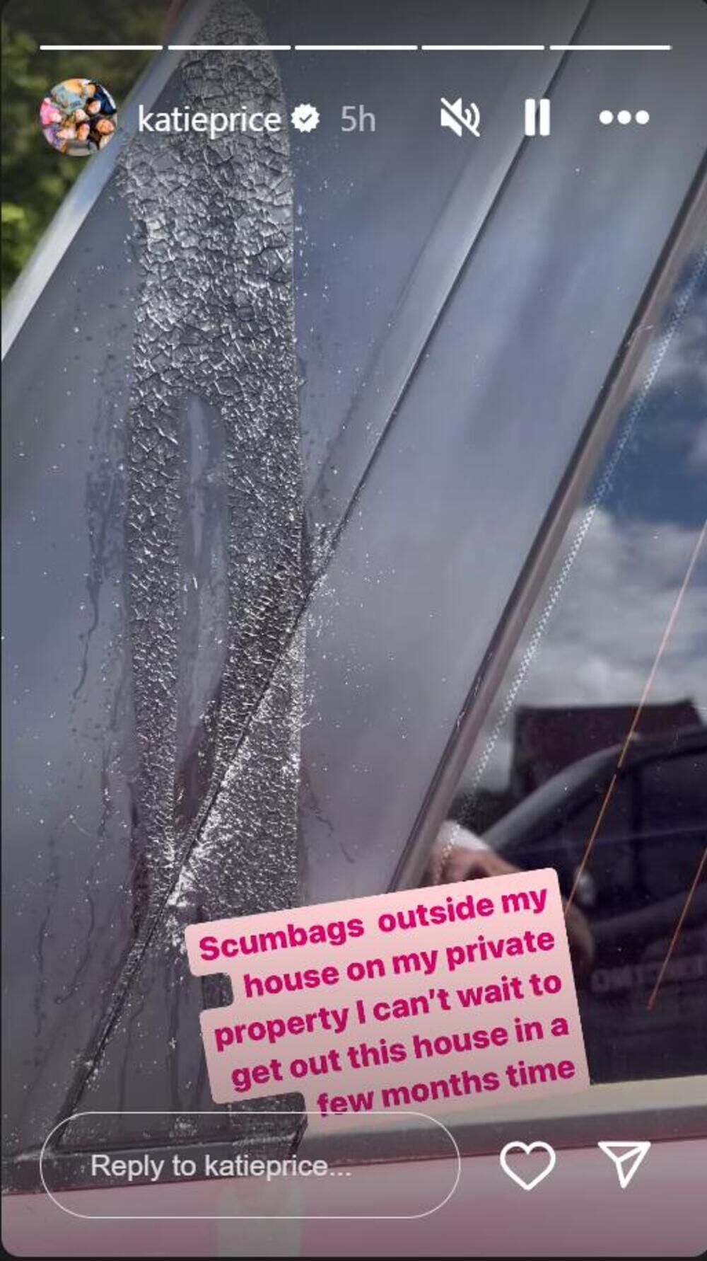 "Lepo je znati da je neko u toku noći došao da baci kiselinu po mom autu, svuda. Hvala ti ko god da si," napisala je izrevoltirana Kejti, zatim dodala kako jedva čeka da se iseli iz svoje vile.