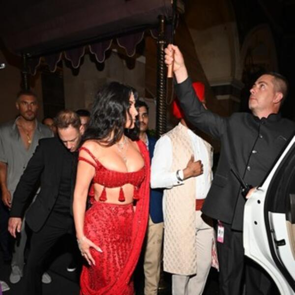 Ona je obukla crveni top, kao i dugačku suknju od istog materijala, dok su njene bujne grudi u prvom planu. Kreacija podseća na tradicionalnu indijsku nošnju, ali je malo više provokativnija.