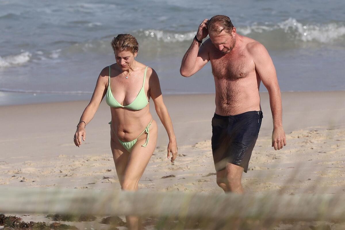 Par je snimljen kako se zabavlja na suncu, a 57-godišnja Kejt Volš nije skidala osmeh s lica dok je ponosno pokazivala obline i prirodno telo u zelenom kupaćem kostimu.