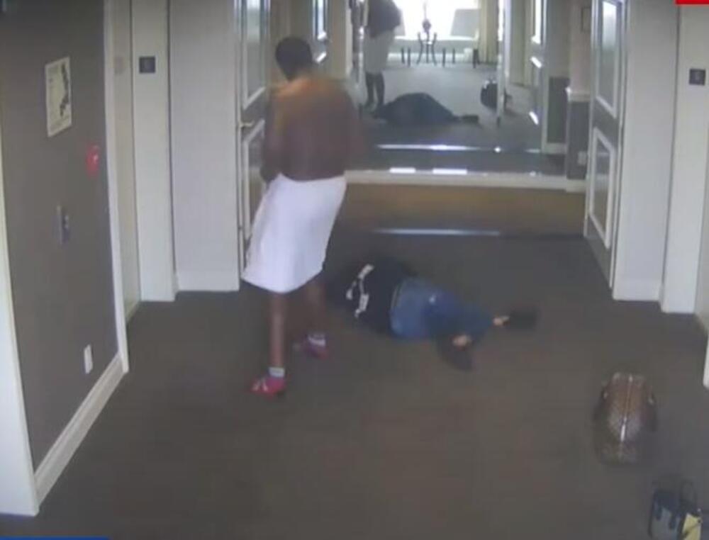 Na snimku, Kombs u peškiru besno juri Kesi niz hodnik, hvata je za glavu, obara na pod i krvnički šutira dok leži nepomična. Potom je vuče nazad u sobu za kapuljaču, dok se na snimku kasnije pojavljuje i pripadnik obezbeđenja koji pokušava da interveniše. Snimak nema zvuk, ali je vizuelni sadržaj toliko uznemirujući da je ostavio sudnicu u potpunoj tišini.