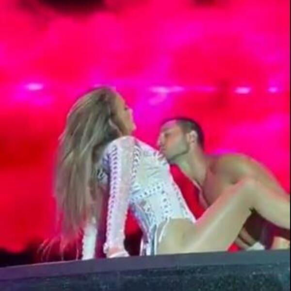 Džej Lo je u jednom trenutku pevala "na sve četiri" ispred jednog od plesača, a potom ju je drugi podigao na svoje rame. Lopez se potom okrenula međunožjem prema njegovom licu, te ju je on spustio na pod.