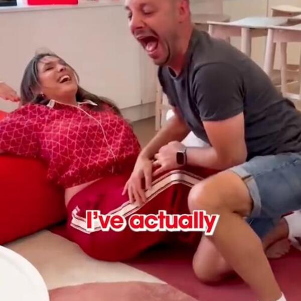 U trenutku kada je izgubila oslonac, pala je pravo na Džejsonovu glavu, a zatim se našla na podu, ne prestajući da se smeje. Usred smehotresa, obratila se kolegama koji su snimali: "U-pi-ški-la sam se! Možemo li dobiti ubruse?"