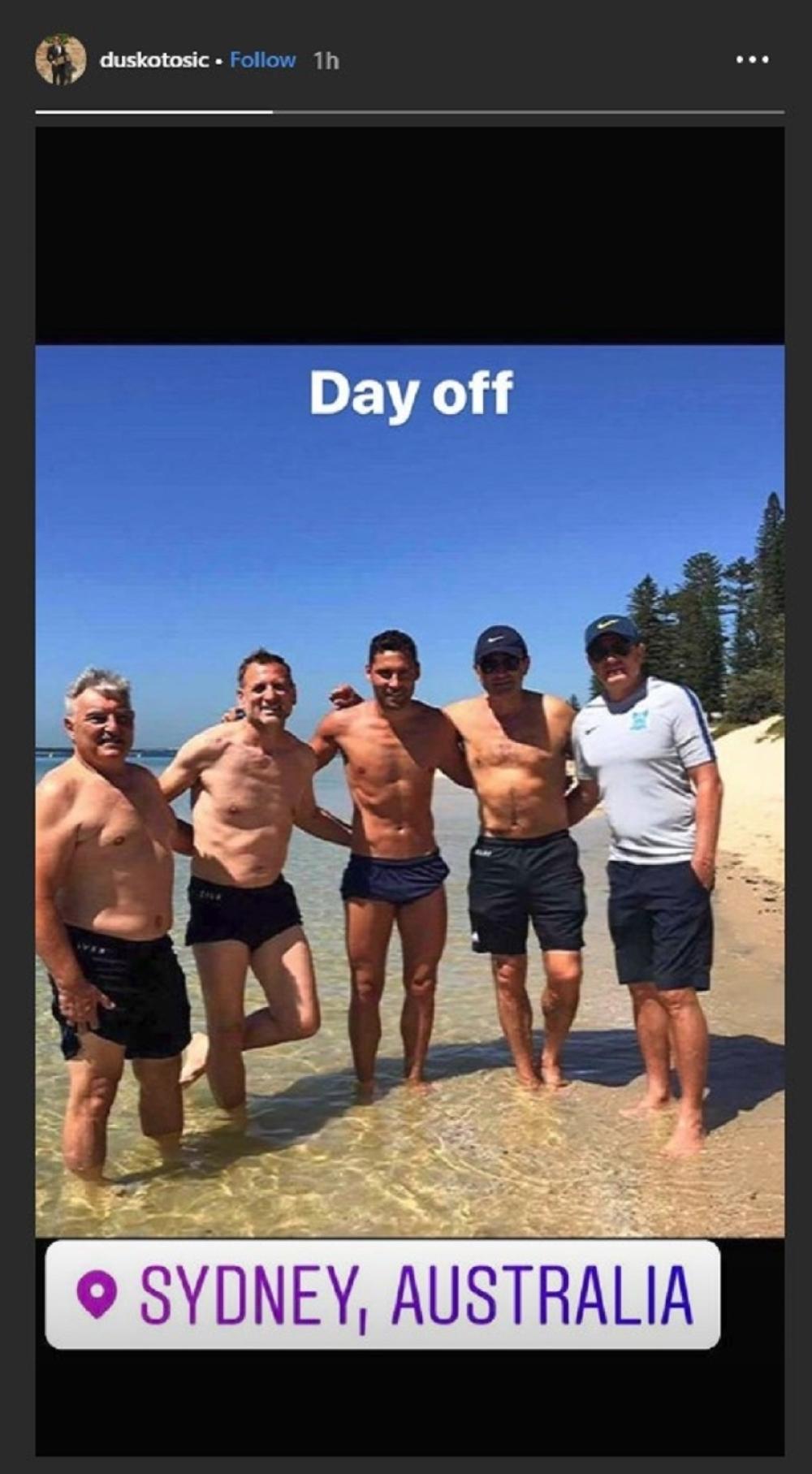 Suprug Jelene Karleuše Duško Tošić trenutno je u Australiji odakle se danas oglasio na Instagramu objavivši fotografiju na kojoj je go do pojasa s grupom muškaraca.