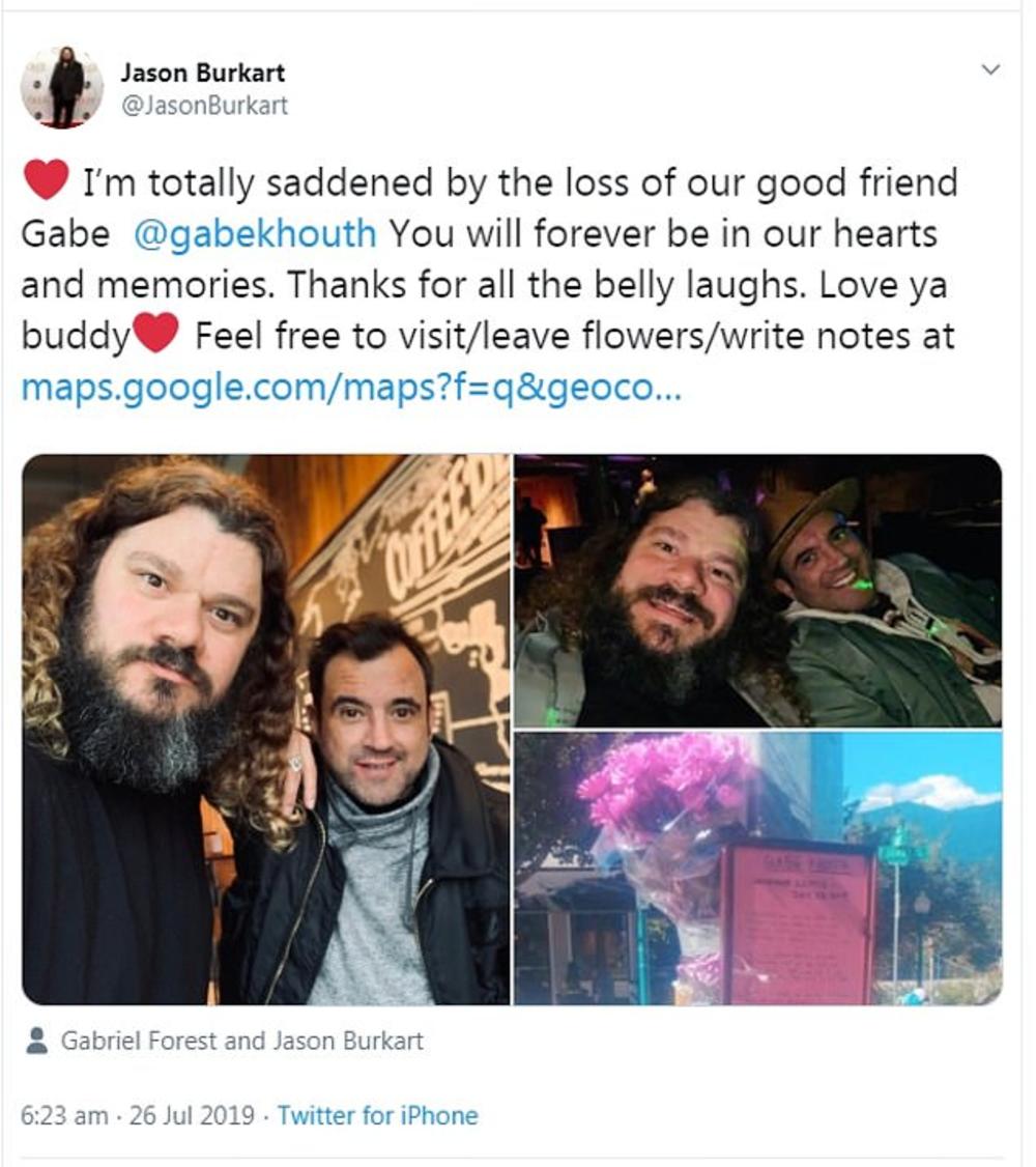 - Moj prijatelj, Gejb Kout imao je srčani udar dok je vozio motor i nesrećno je nastradao. On je uvek uspevao sve da nasmeje i moje iskreno saučešće upućujem njegovoj porodici i prijateljima.