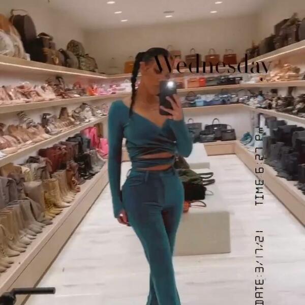 Naime, slavna starleta je pozirala u ogledalu u zelenoj odevnoj kombinaciji, pa je pokazala da ima ogroman cipelarnik.