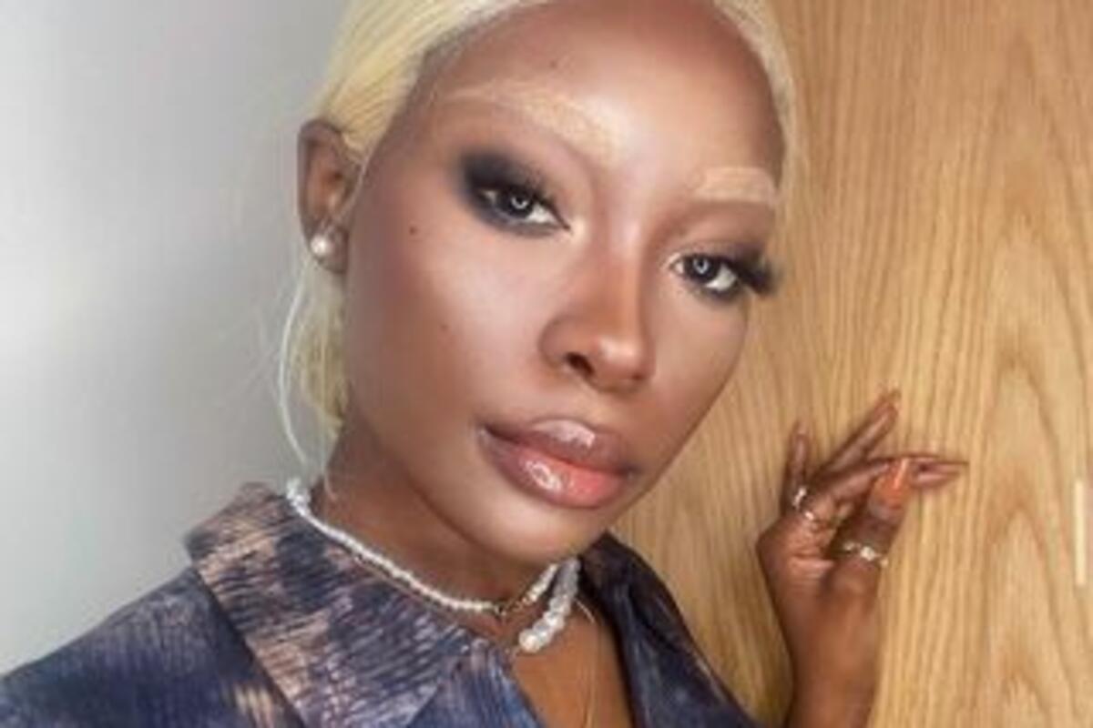 Ona pozira najpre sa crnom kosom i pletenicama i izblajhanim obrvama, da bi nešto kasnije objavila fotografiju sa plavom kosom i isto izblajhanim obrvama i jakom šminkom.