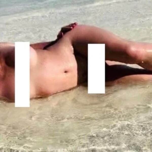 Pored fotografija objavila je i kratak video na kojem se bez gornjeg dela valja po pesku.