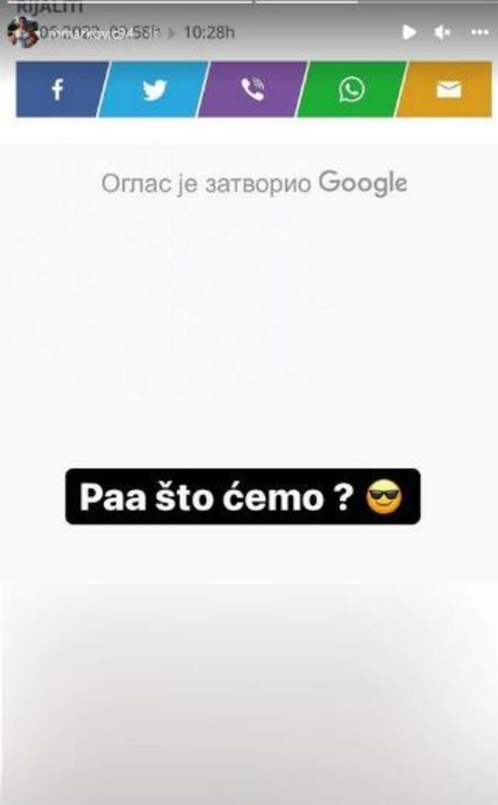 Bivši dečko starlete Stanije Dobrojević je podelio ovu vest na svom Instagram nalogu uz komentar: "Paa, što ćemo".
