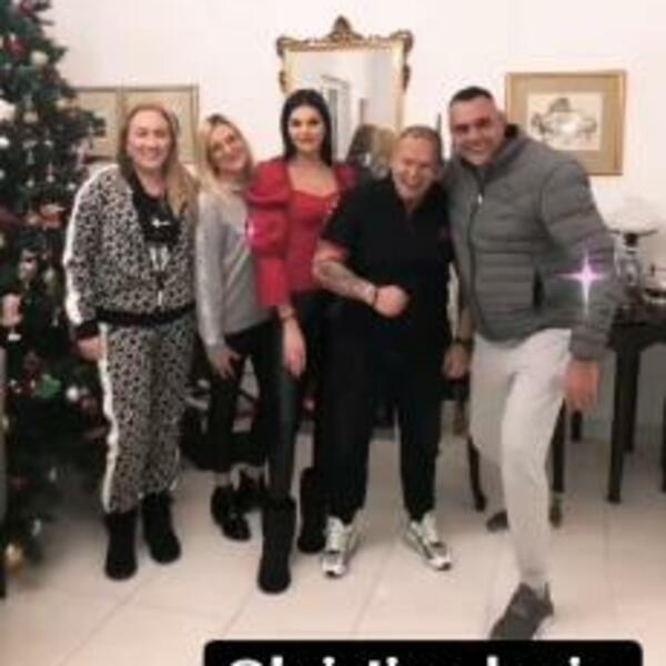 Ona je tada stala u sredinu kao prava domaćica i nije skidala osmah sa lica dok je pozirala sa svojim najbližima, a iza njih mogao se primetiti raskoš i sjaj luksuzne Karićeve vile.