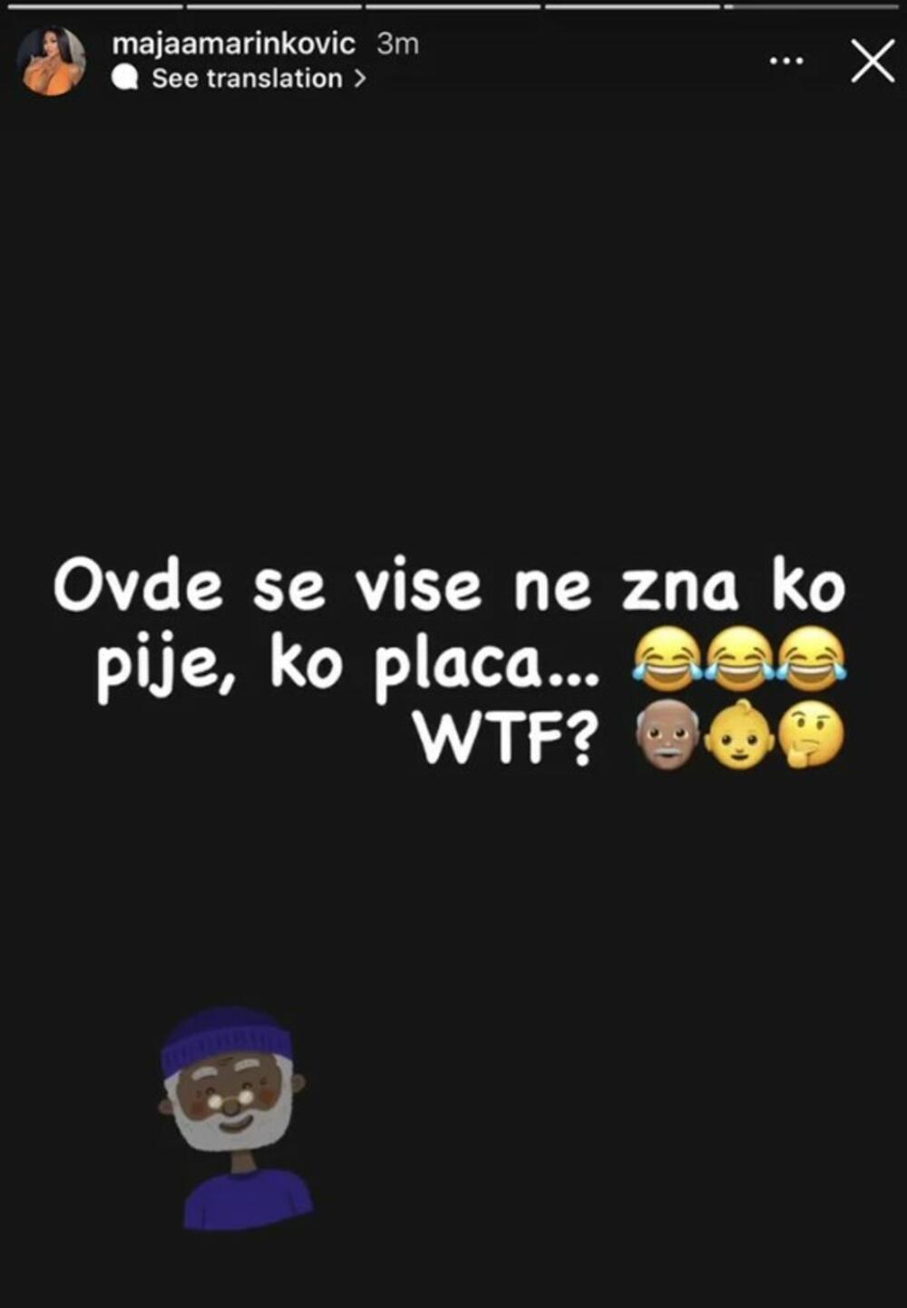 Ovde se više ne zna ko pije, a ko plaća... WTF (Šta koji k*rac?) - napisala je Marinkovućeva uz raznovrsne emotikone i smajlije koji plaču od smeha.