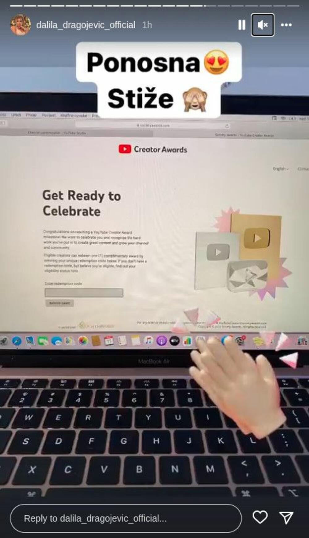 Ona je na svom Instagram nalogu objavila da je dobila od Jutjuba srebrnu nagradu za to što je stekla 100.000 pratilaca na svom kanalu.