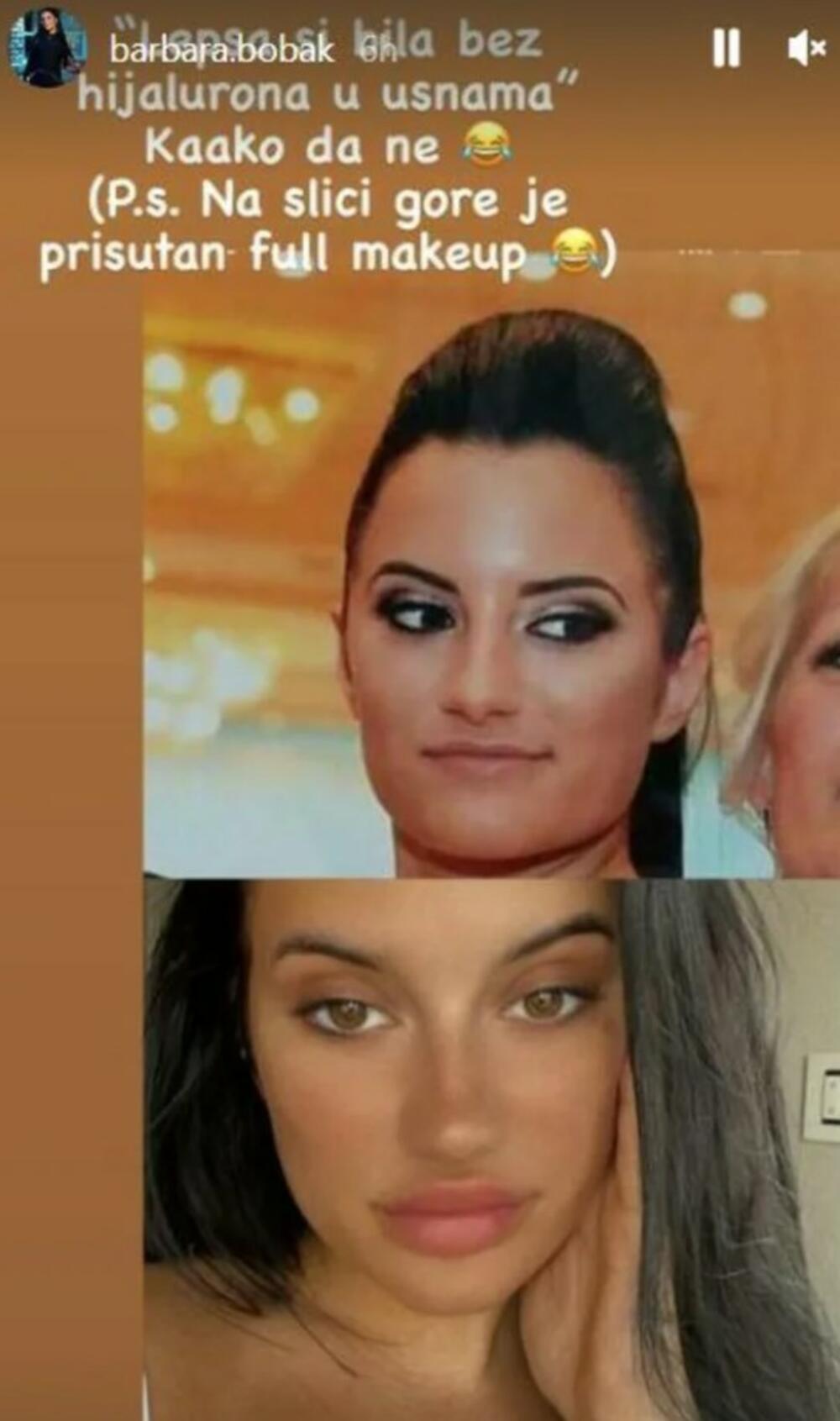 Za kraj, Barbara je postavila i dve fotografije sebe, onu bez filera u usnama i jednu novu sa hijaluronom.